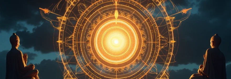 Le mandala, littéralement « cercle » en sanskrit, constitue une cartographie énergétique complexe basée sur la géométrie sacrée. Ces diagrammes circulaires, construits selon des proportions mathématiques précises, intègrent carrés, triangles et cercles concentriques dans des configurations spécifiques. Chaque élément géométrique correspond à un aspect particulier de la conscience ou à un centre énergétique du corps humain.