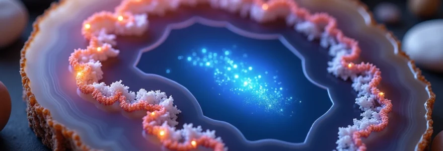 Les agates occupent une place particulière dans l’univers des pratiques énergétiques contemporaines, suscitant un intérêt croissant parmi les praticiens de lithothérapie et les chercheurs en bioénergétique. Ces formations cristallines exceptionnelles, issues de processus géologiques complexes, présentent des caractéristiques vibratoires uniques qui en font des outils privilégiés pour l’harmonisation énergétique. Leur structure particulière en bandes concentriques et leur composition riche en silice leur confèrent des propriétés remarquables dans la régulation des flux énergétiques corporels. L’intérêt scientifique pour ces minéraux s’intensifie également, notamment à travers l’étude de leurs effets piézoélectriques et de leur influence sur les champs bioénergétiques humains.